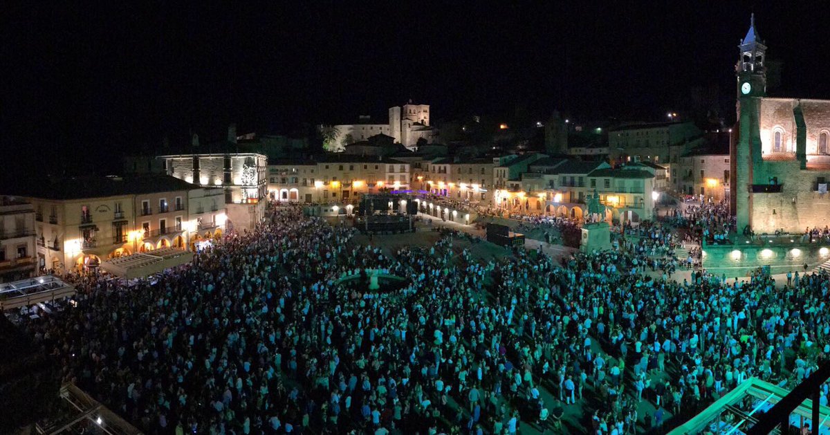 Las Fiestas Patronales dedicadas a la Vigen de la Victoria culminan con La Salve, miles de trujillanos cantan el himno en la Plaza Mayor ante la única luz que ilumina la imagen de la Patrona.